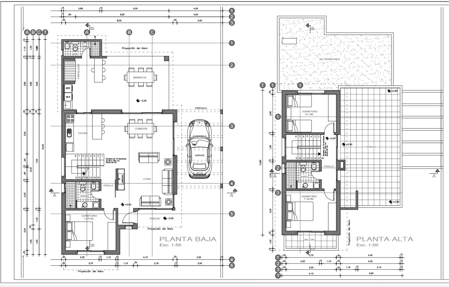 Planta baja: 1 dormitorio, 1 baño, living y cocina comedor.