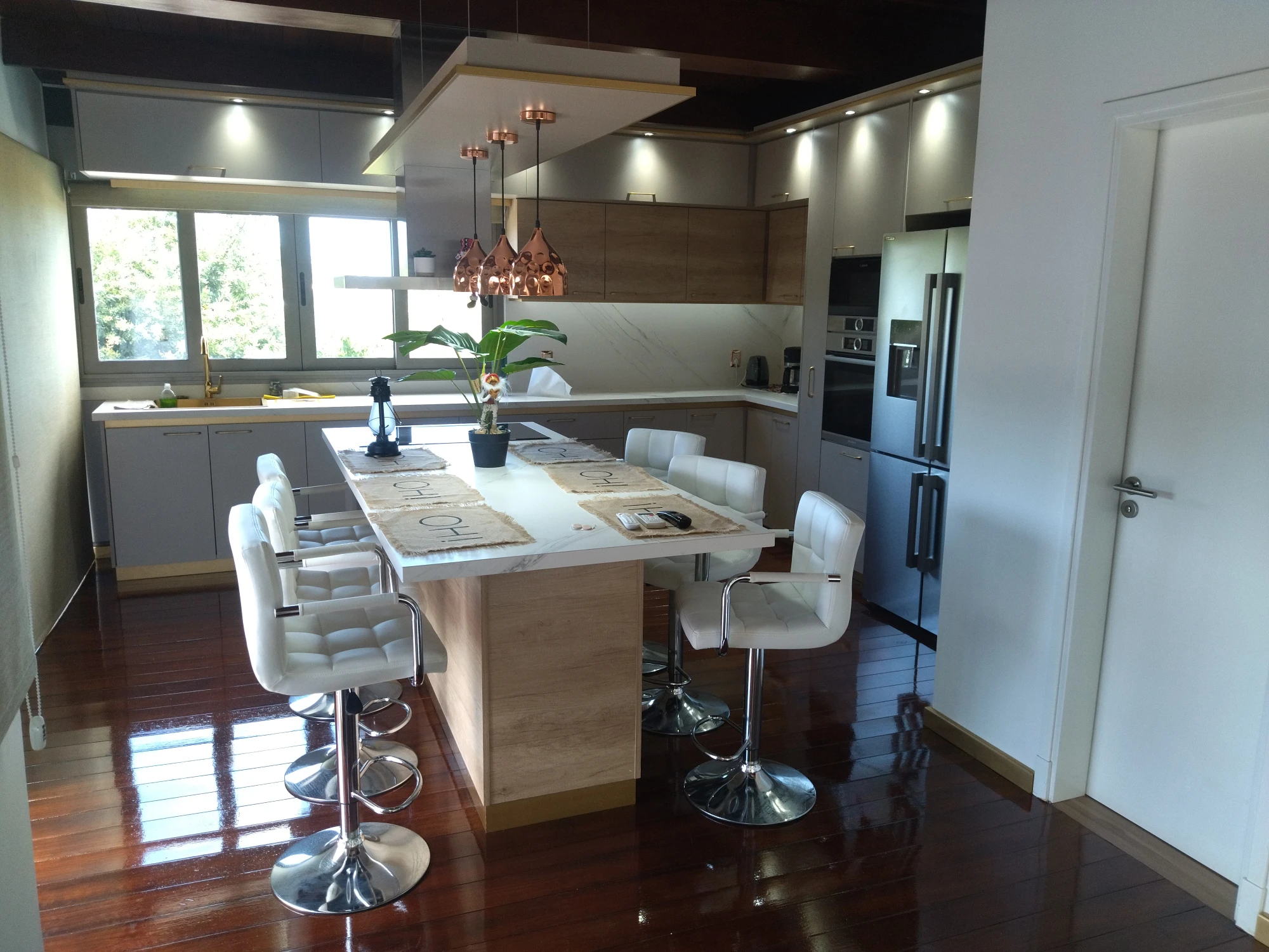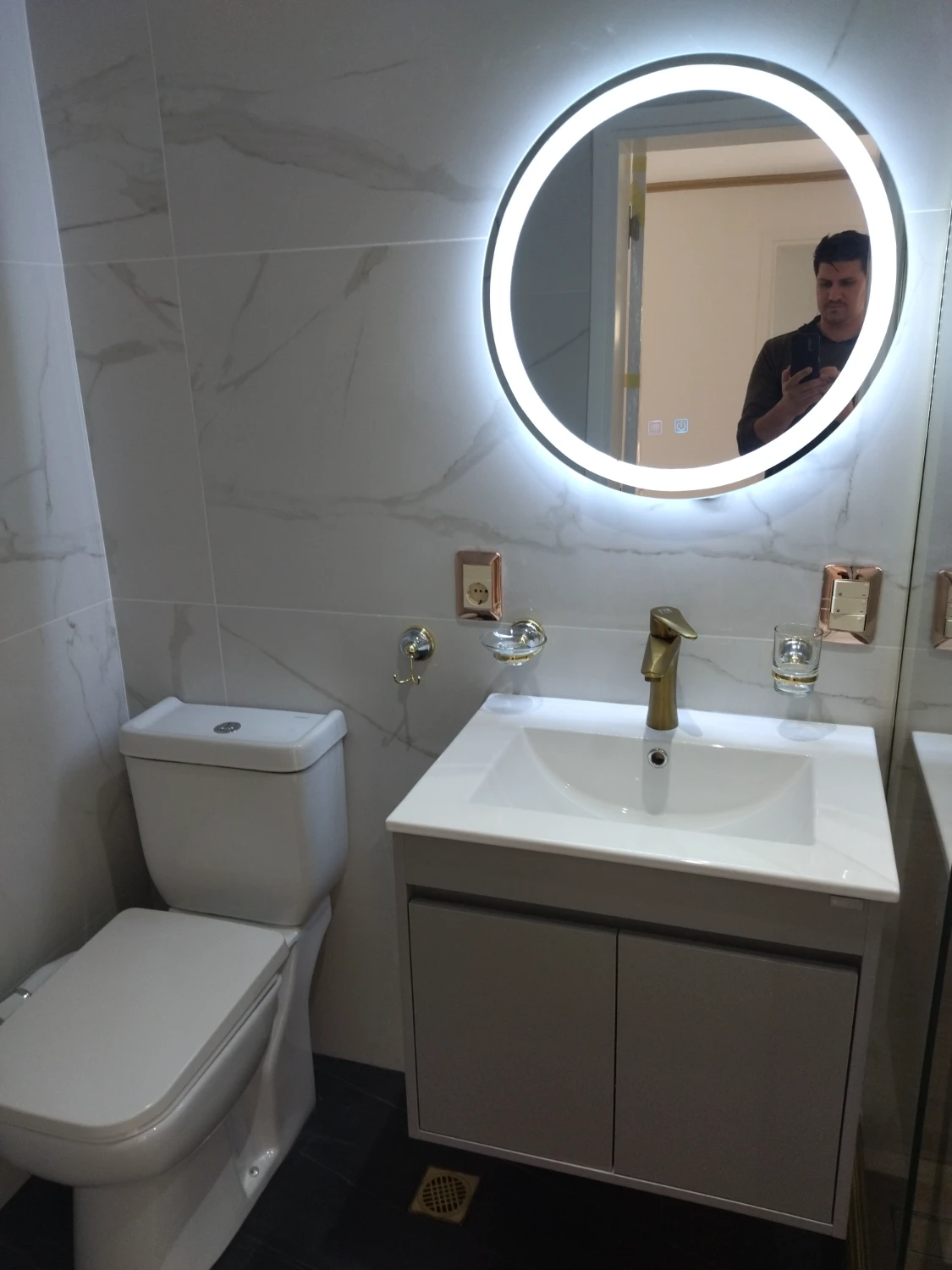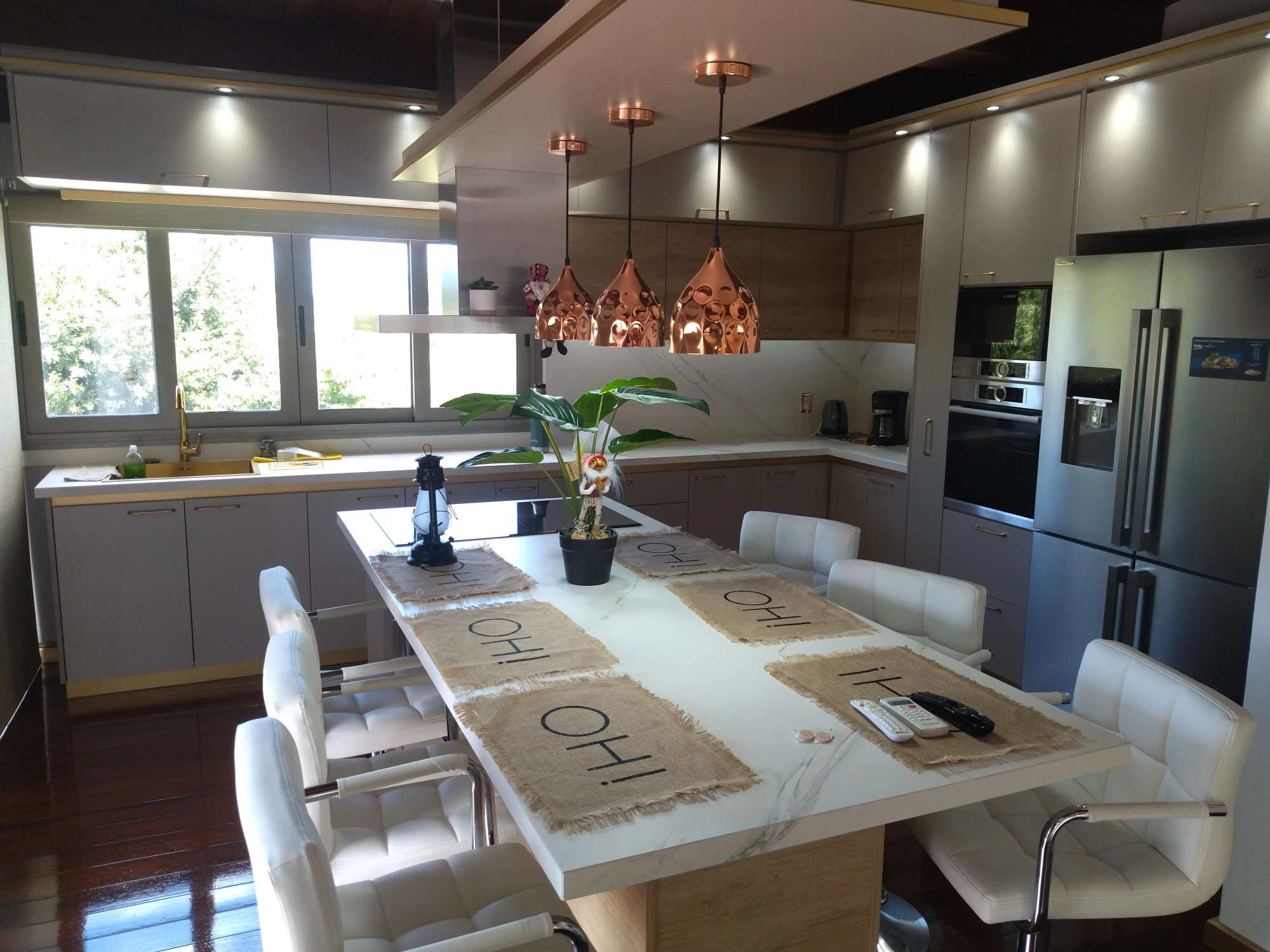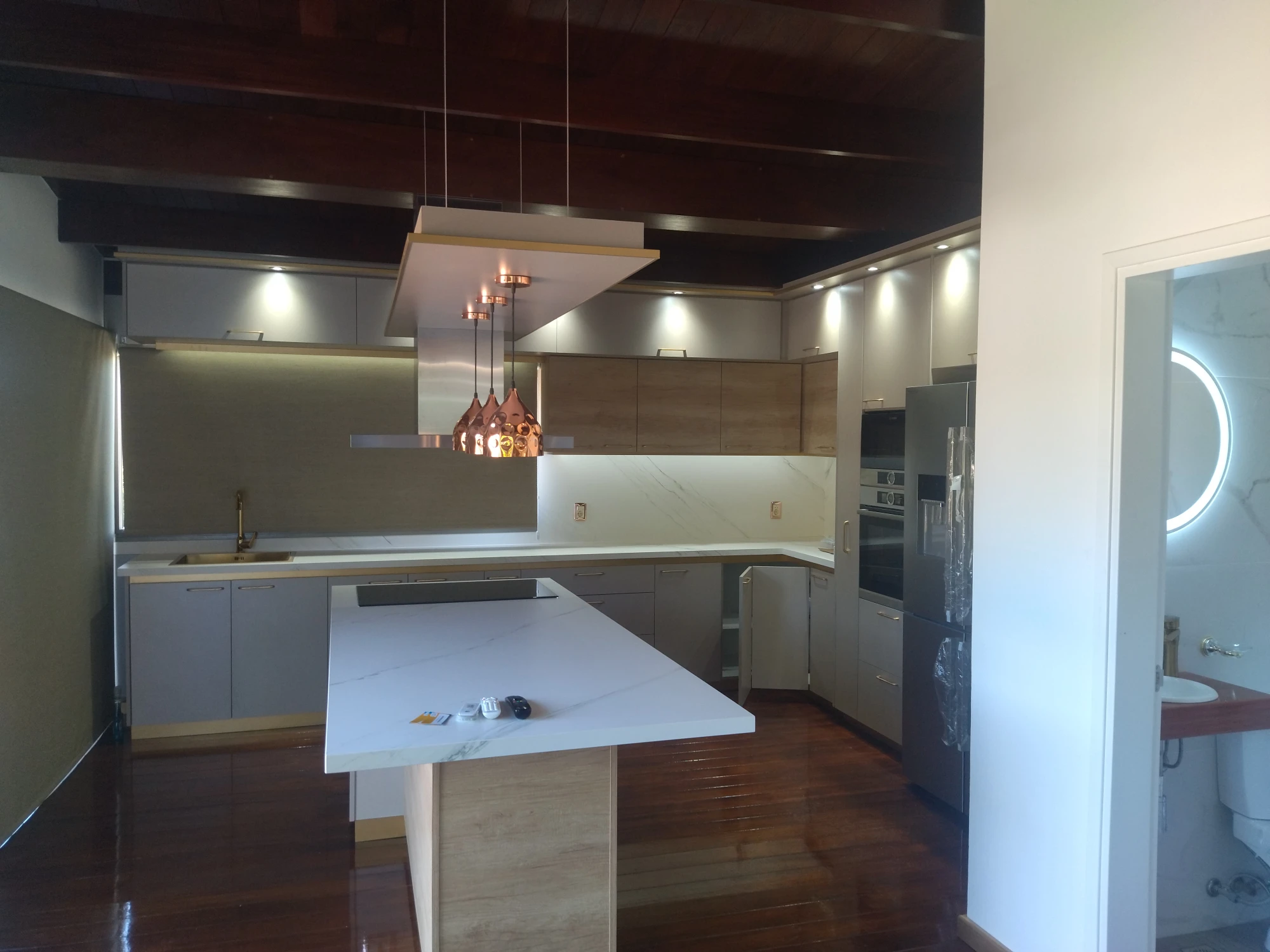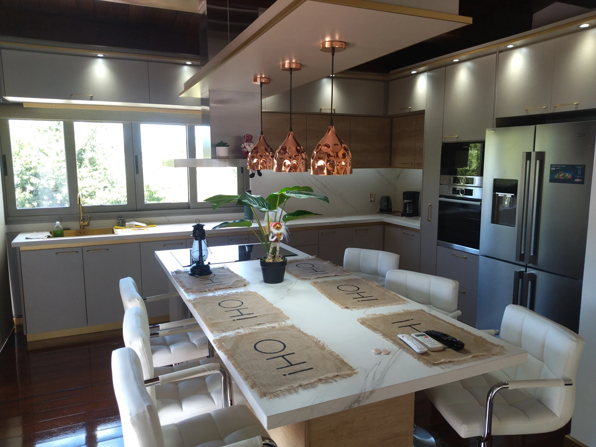 Detalles: todas las griferías y lavavos de baños y cocina en color dorado.