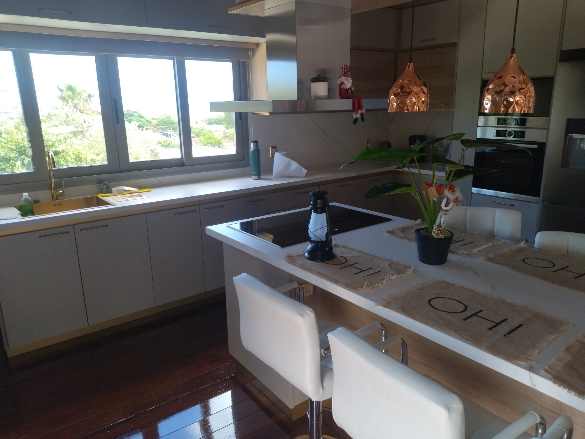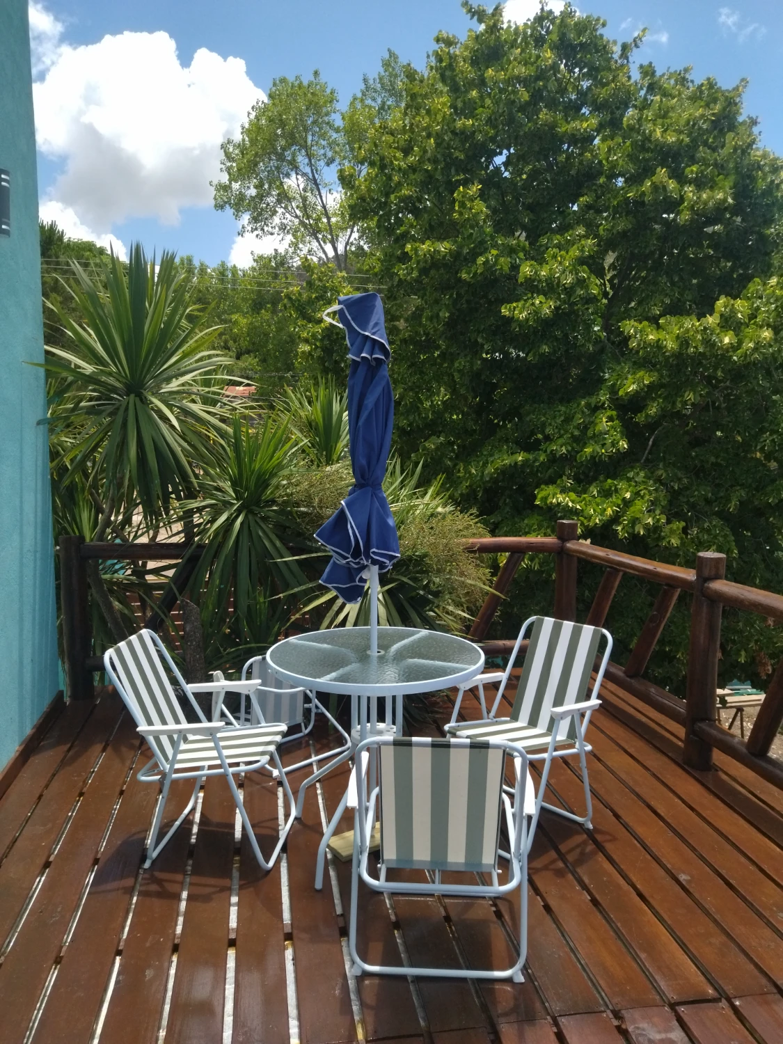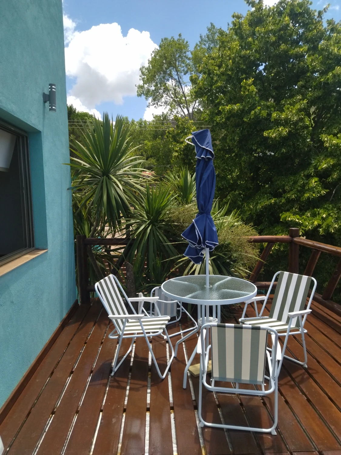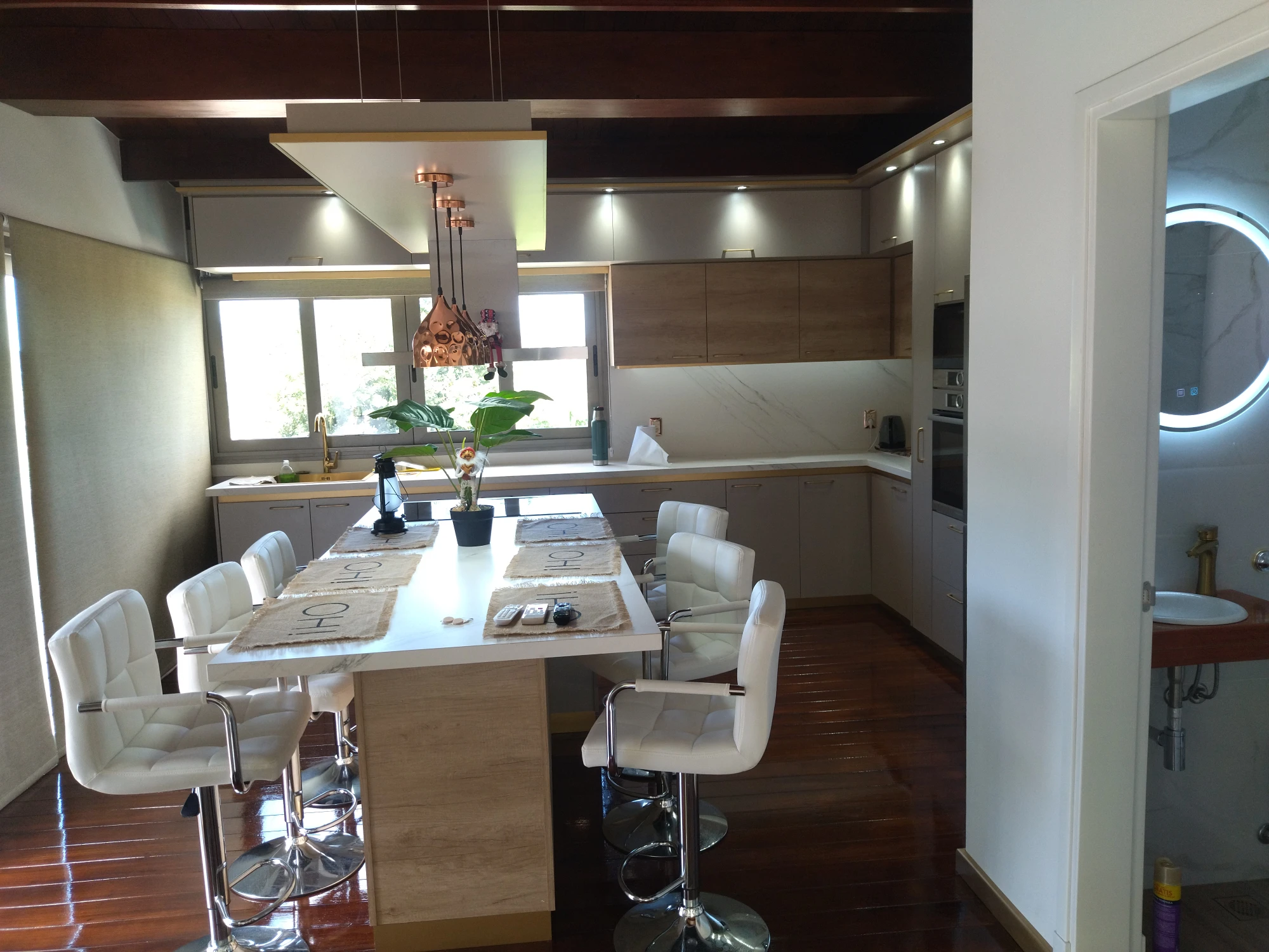 Planta alta: living comedor y cocina todo integrado, un toilette y una magnifica terraza de madera con vista a los cerros y el mar.