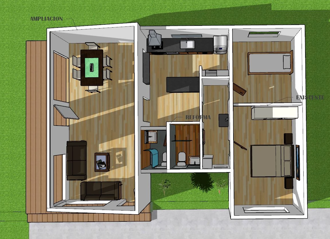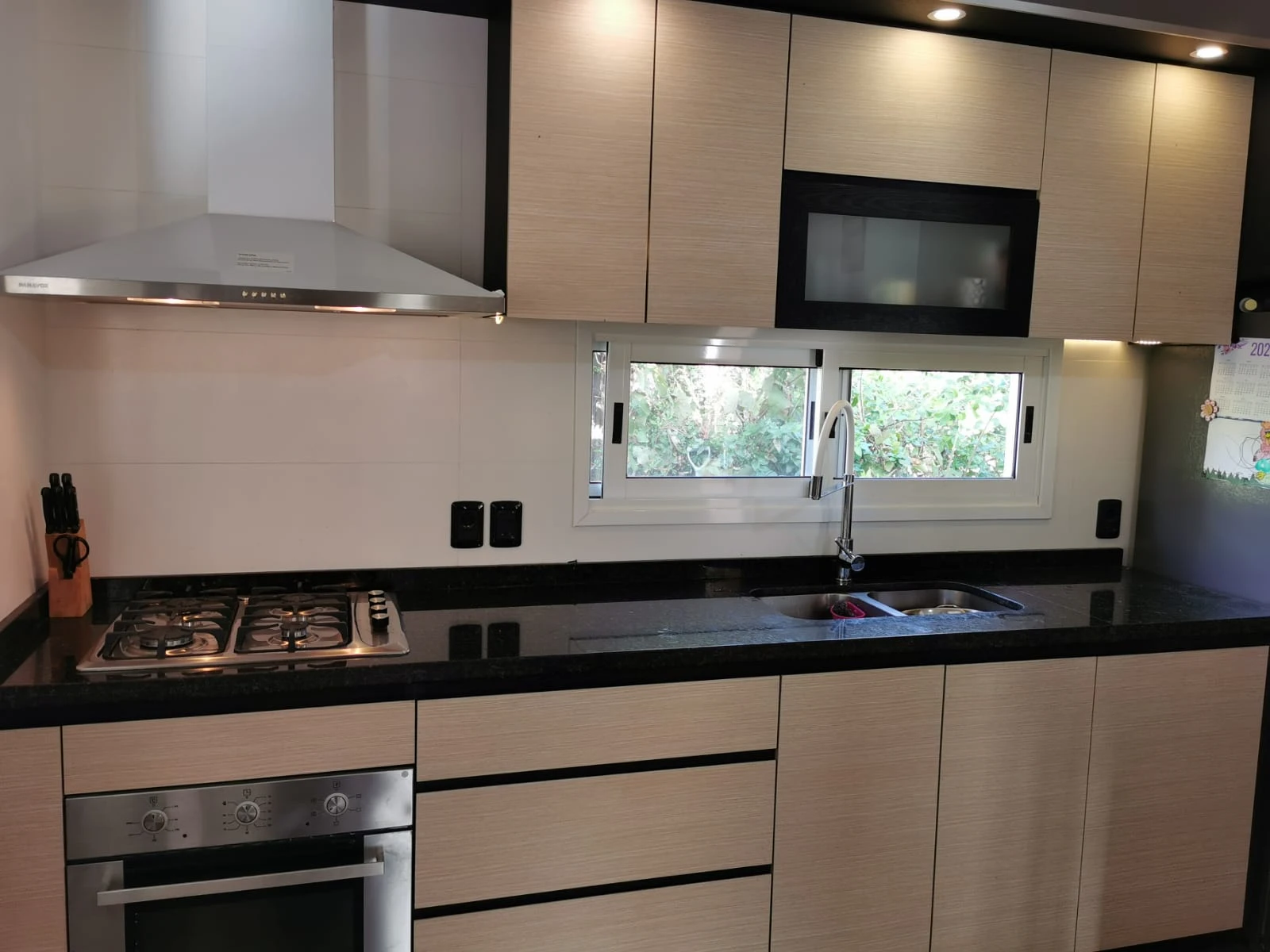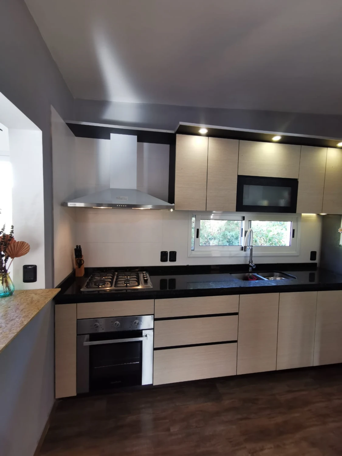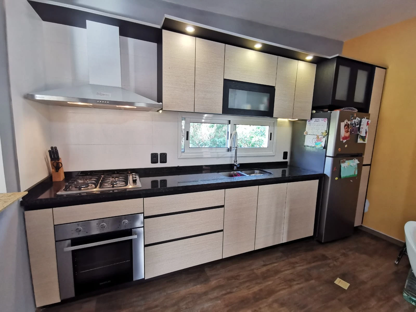 Vivienda de 2 dormitorios, 2 baños (uno en suite), cocina con desayunador, living comedor, cocina: mobiliario de roble americano combinado con fresno negro mesadas granito negro absoluto.